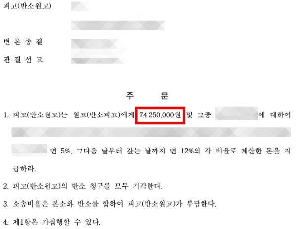 결국 의뢰인은 권리금 7,400만원을 인정받을 수 있었습니다.
