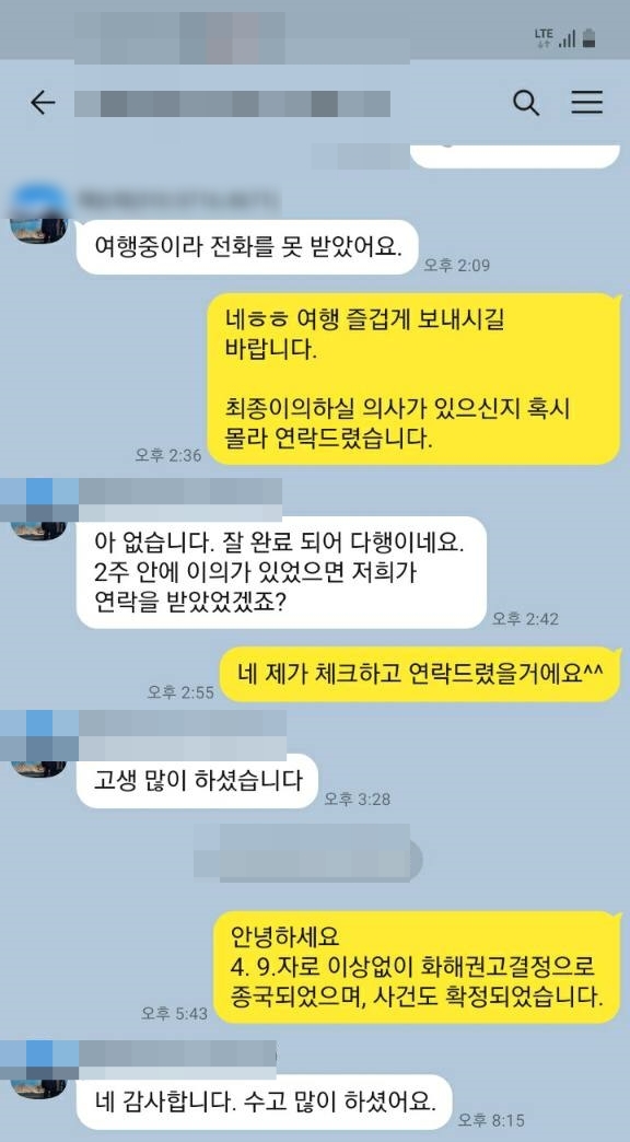 ▷"이상 없이 종국 되었으며, 사건도 확정되었습니다."