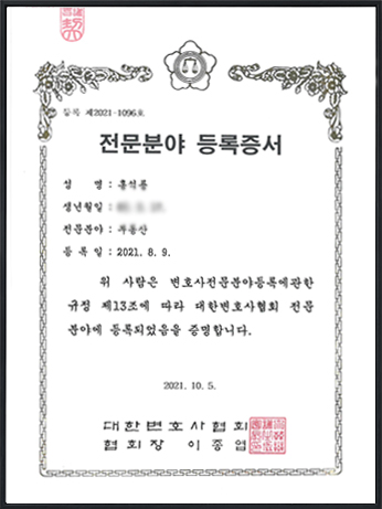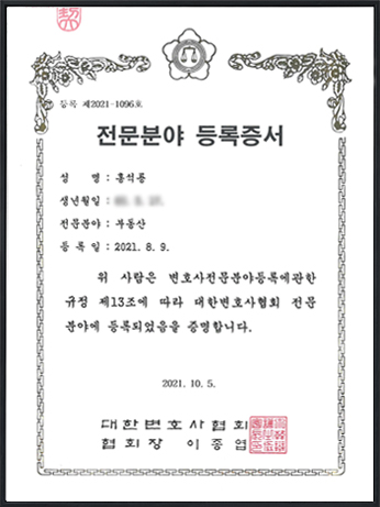 - 대한변호사협회 인증 변호사 (전문분야 : 부동산)
