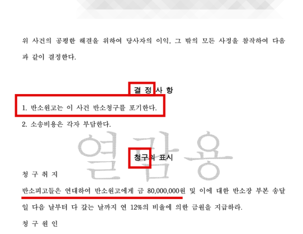 임차인은 명도 소송 및 권리금 소송이 진행되는 도중 상황이 불리한 것을 인지하고,