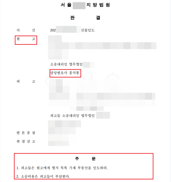 명도소송에서 승소할 수 있었습니다.